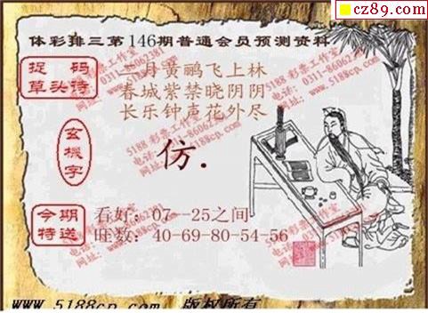 2019146期牛彩网体彩P3画迷图谜汇总分享