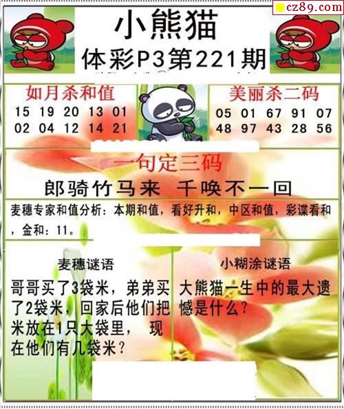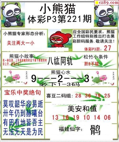 小熊猫2025189期体彩P3图谜