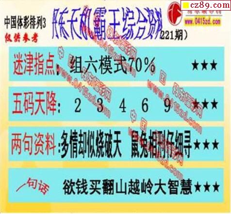 2019年221期牛彩网体彩P3画迷图谜汇总分享