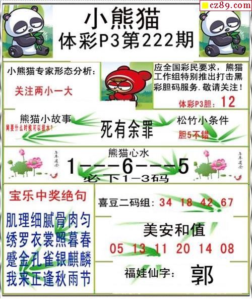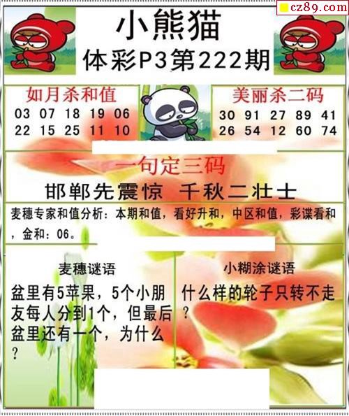 小熊猫2025189期体彩P3图谜