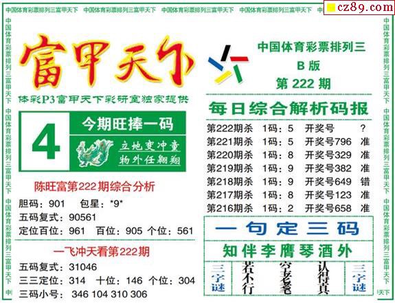 2019年222期牛彩网体彩P3画迷图谜汇总分享