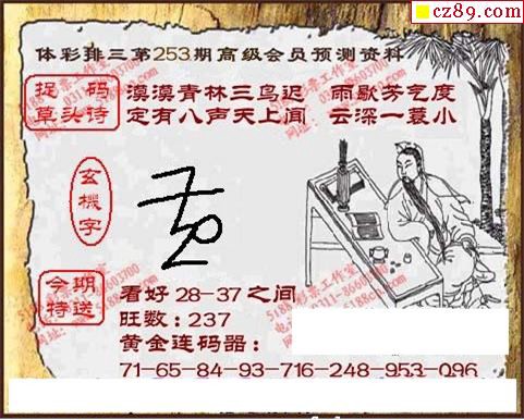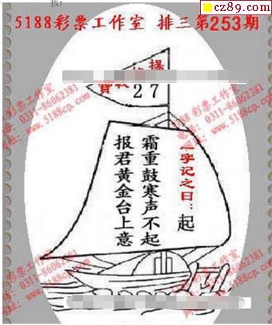 2019年253期牛彩网体彩P3画迷图谜汇总分享