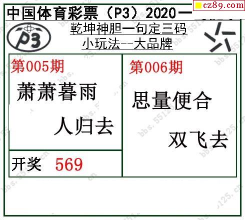2020年006期牛彩网体彩P3画迷图谜汇总分享