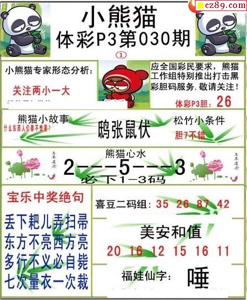 小熊猫2025189期体彩P3图谜