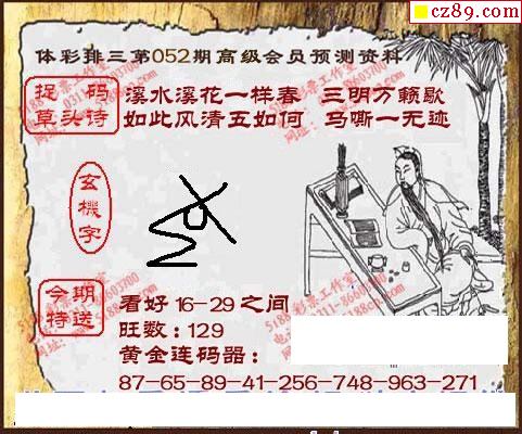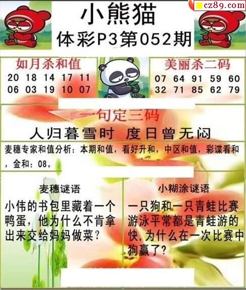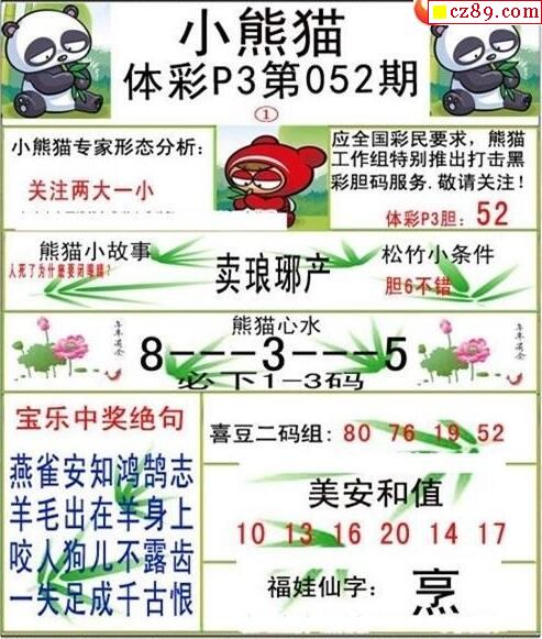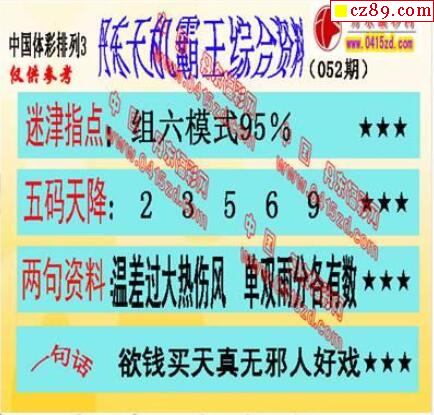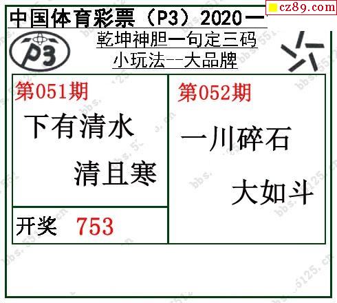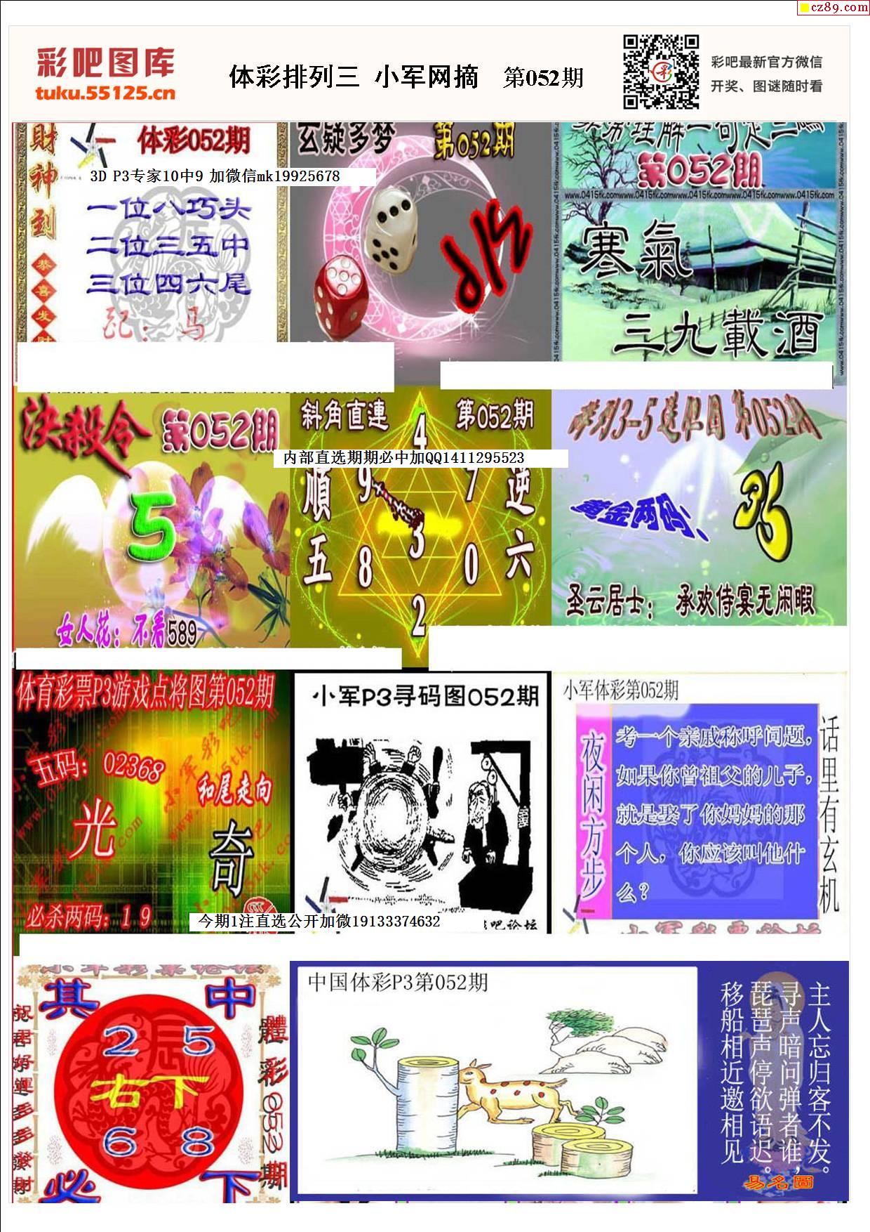 2020年052期牛彩网体彩P3画迷图谜汇总分享