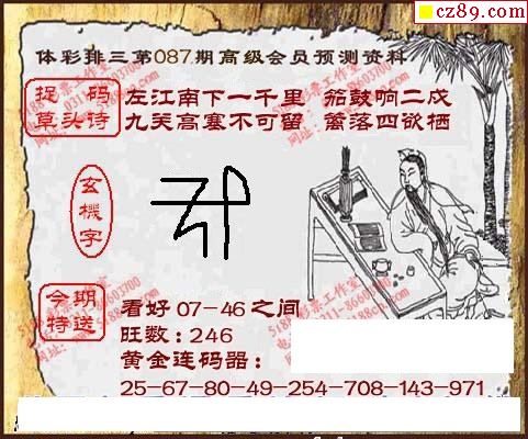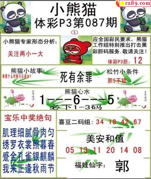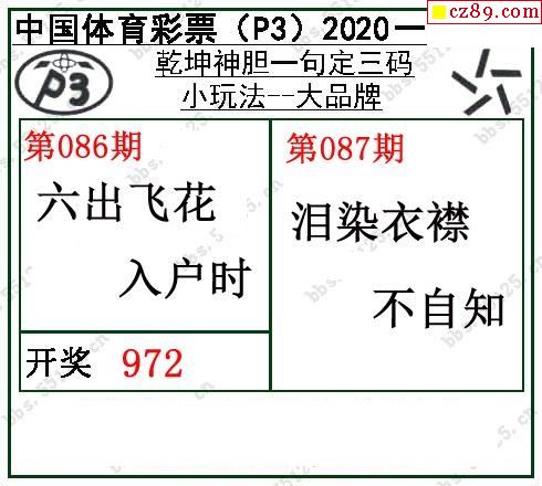 2020年087期牛彩网体彩P3画迷图谜汇总分享