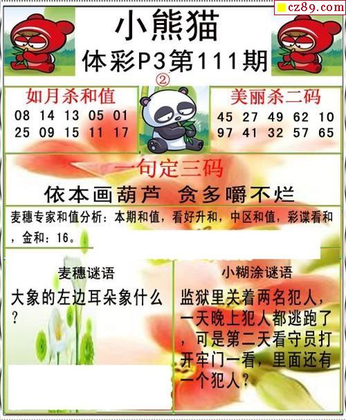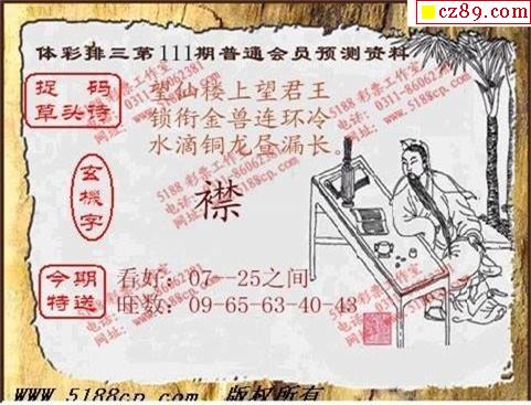 2020年111期牛彩网体彩P3画迷图谜汇总分享
