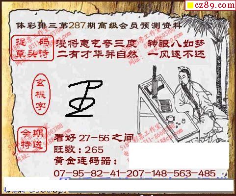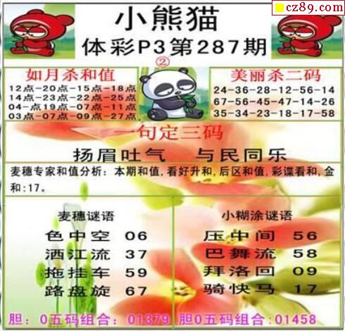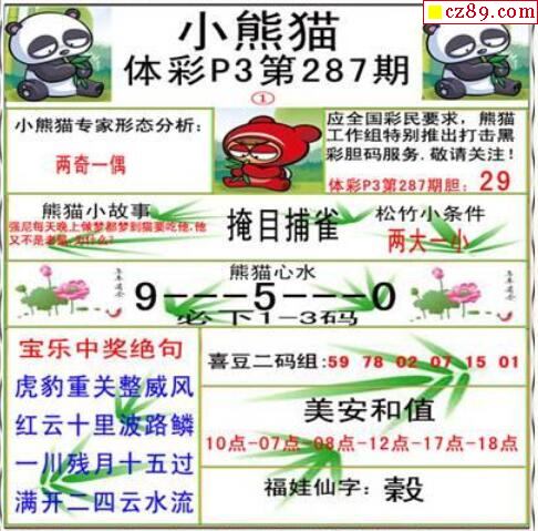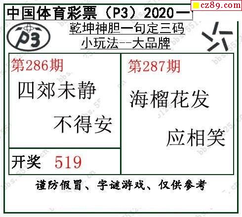 2020年287期牛彩网体彩P3画迷图谜汇总分享