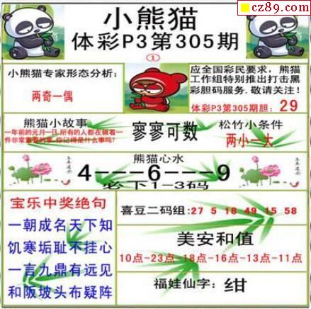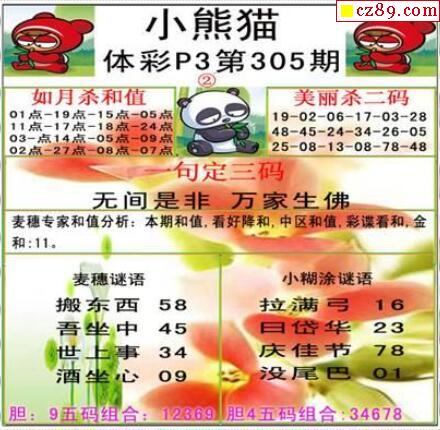 2020年305期牛彩网体彩P3画迷图谜汇总分享