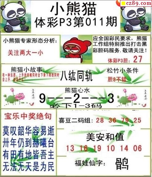 2021年011期牛彩网体彩P3画迷图谜汇总分享