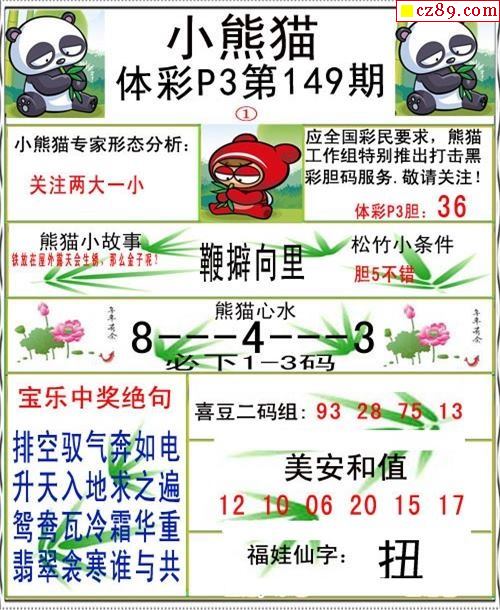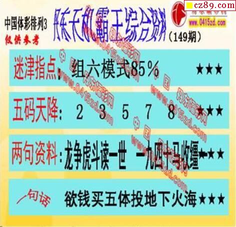 2021年149期牛彩网体彩P3画迷图谜汇总分享