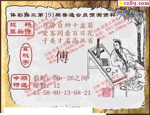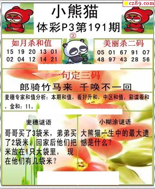 2021年191期牛彩网体彩P3画迷图谜汇总分享