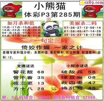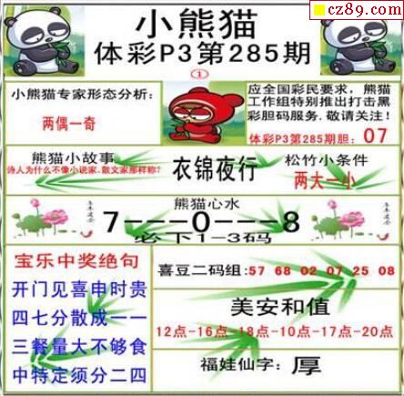 小熊猫2025189期体彩P3图谜