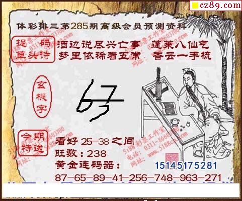 e族2025年189期体彩排列3图谜