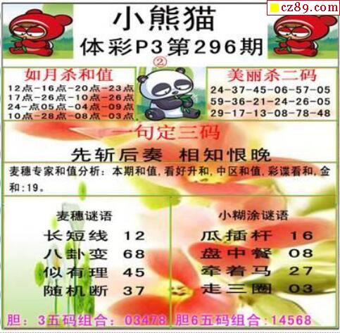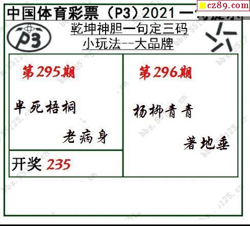 2021年296期牛彩网体彩P3画迷图谜汇总分享