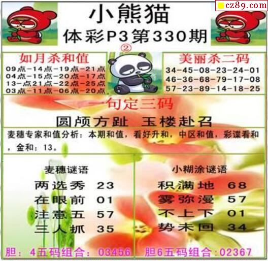 2021年330期牛彩网体彩P3画迷图谜汇总分享