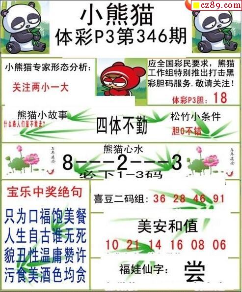 2021年346期牛彩网体彩P3画迷图谜汇总分享