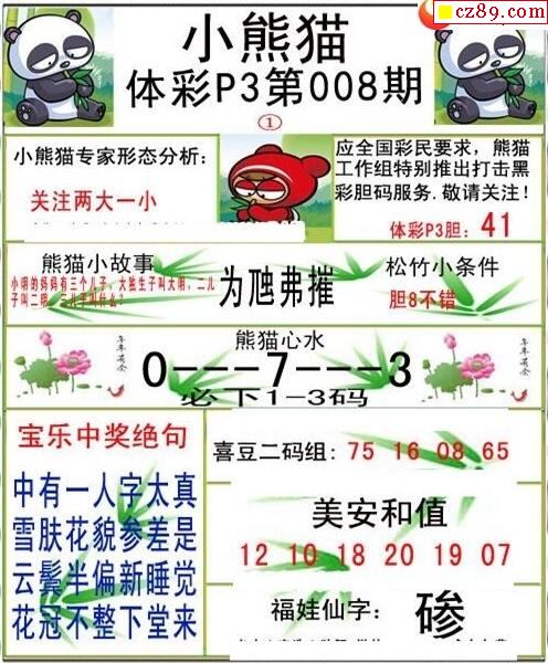 小熊猫2025189期体彩P3图谜