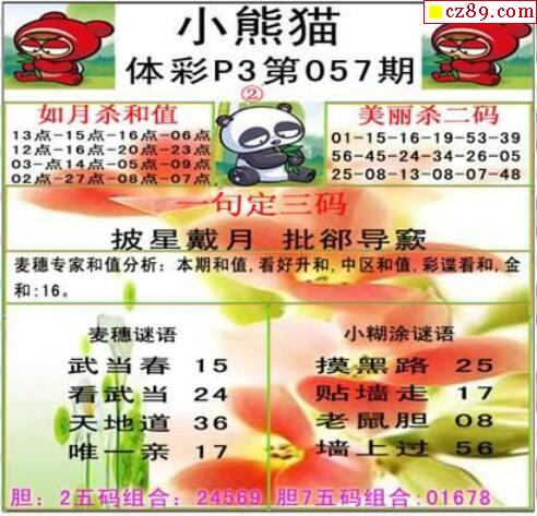 2022年057期牛彩网体彩P3画迷图谜汇总分享