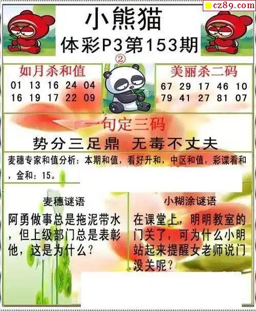 小熊猫2025189期体彩P3图谜
