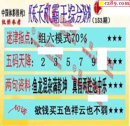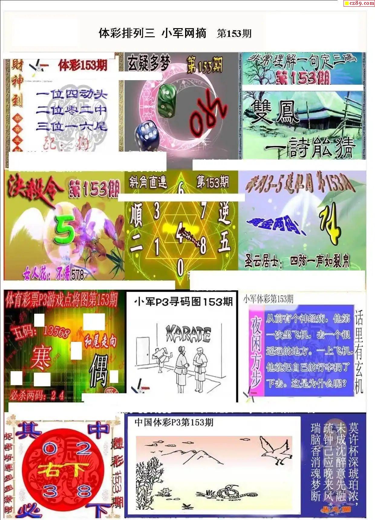2023年153期牛彩网体彩P3画迷图谜汇总分享