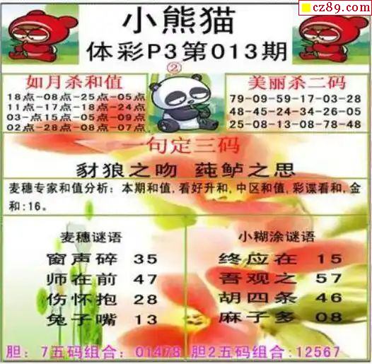 小熊猫2025189期体彩P3图谜