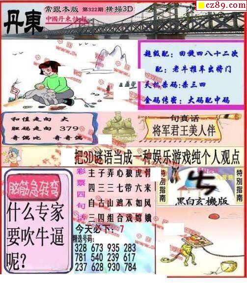 牛彩版3D字谜彩报图25年189期打印版