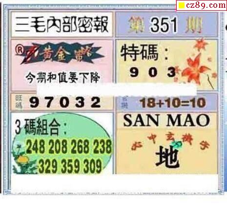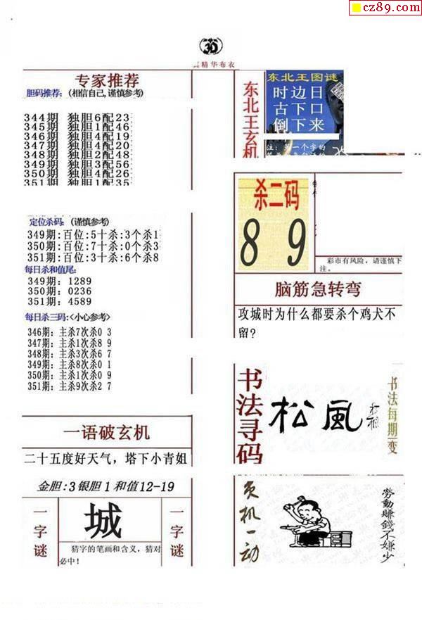 牛彩版3D字谜彩报图25年189期打印版