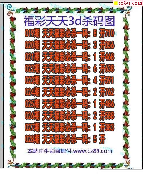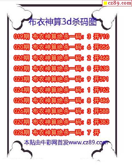 牛彩版3D预测彩报图25年189期打印版