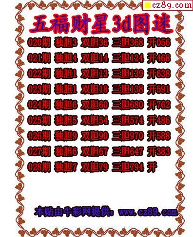 2025189期3D图谜汇总(一)