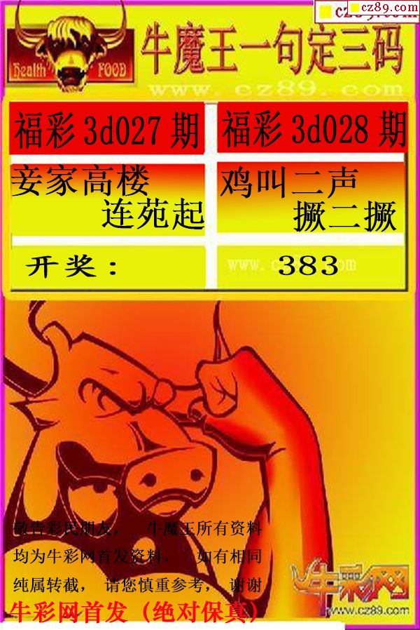 牛彩版3D字谜彩报图25年189期打印版