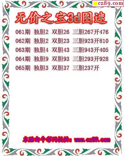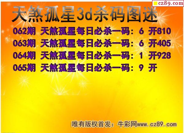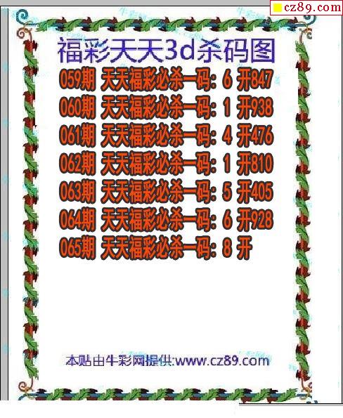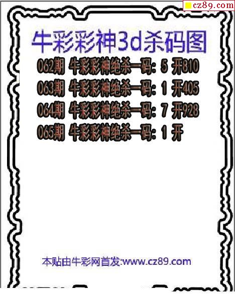 牛彩版3D预测彩报图25年189期打印版