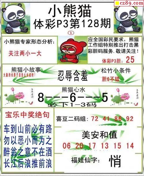 小熊猫2025189期体彩P3图谜