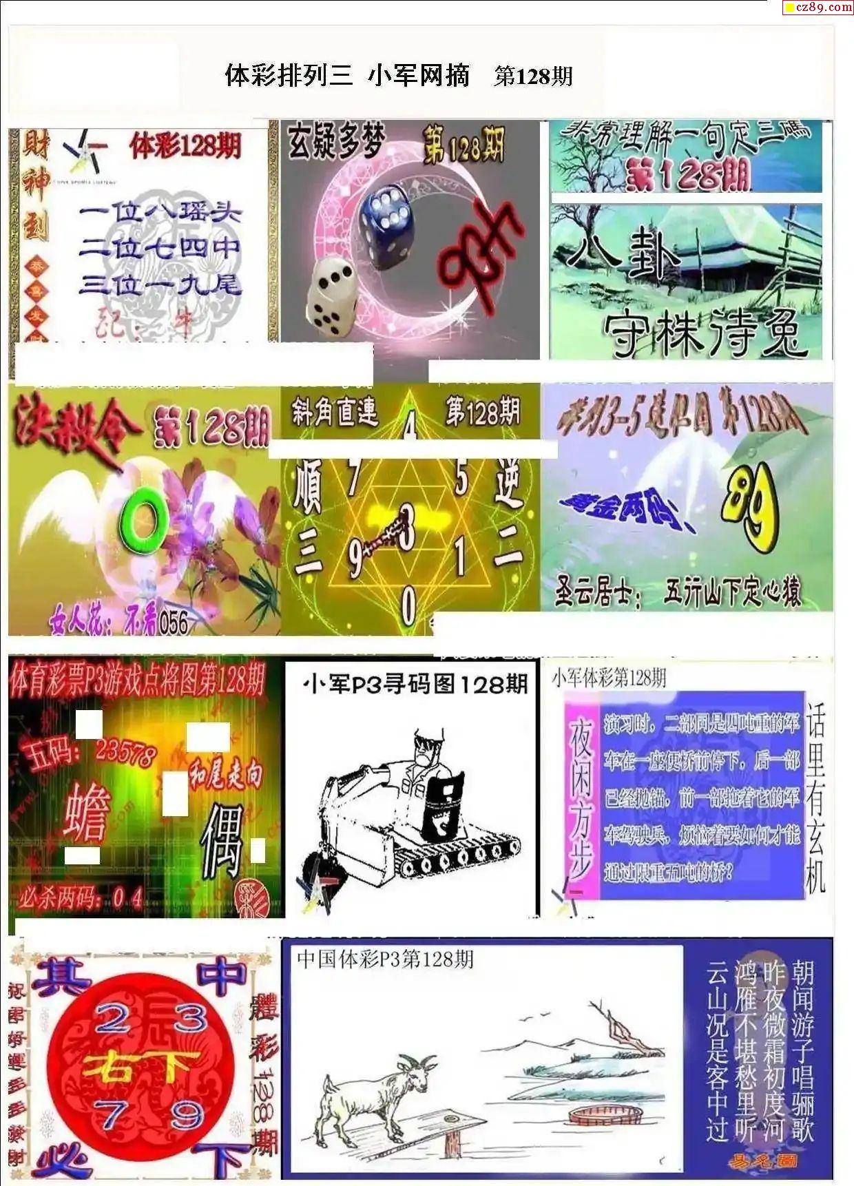 2025年128期牛彩网体彩P3画迷图谜汇总分享