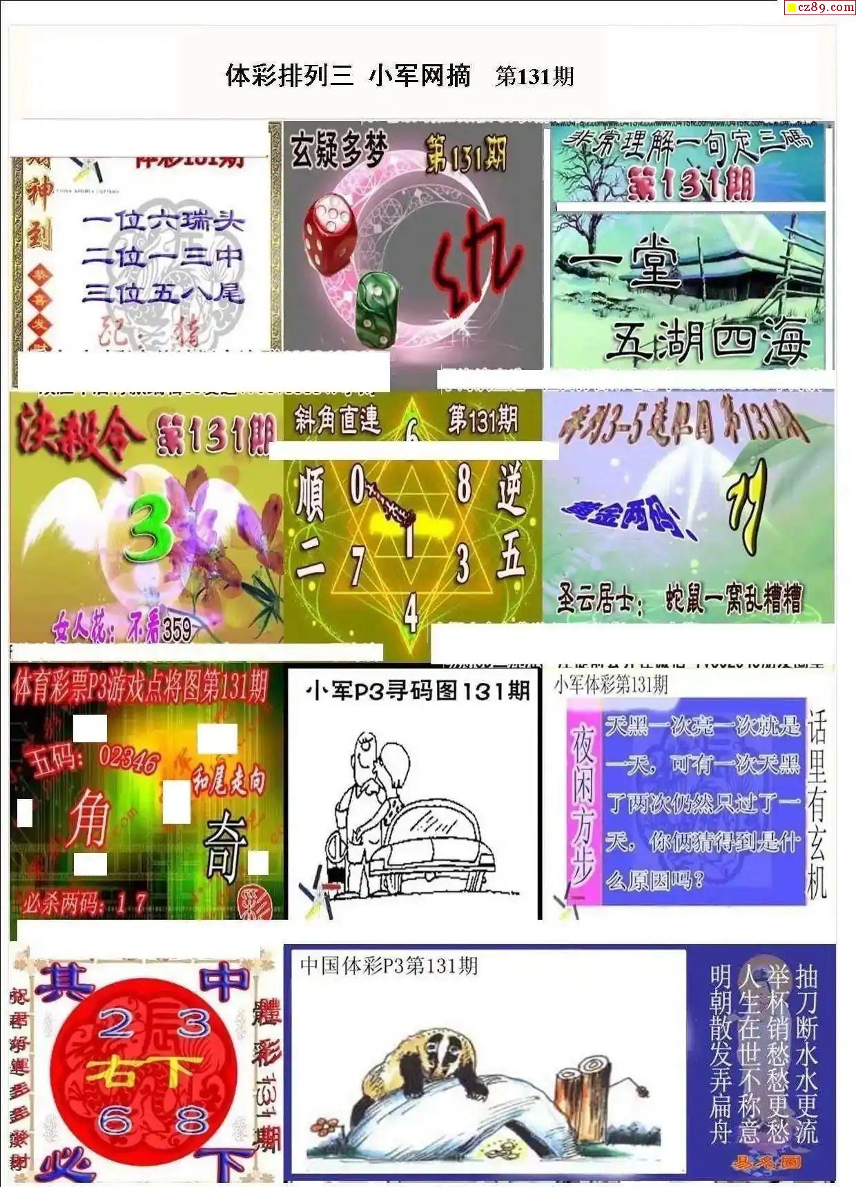 2025年131期牛彩网体彩P3画迷图谜汇总分享