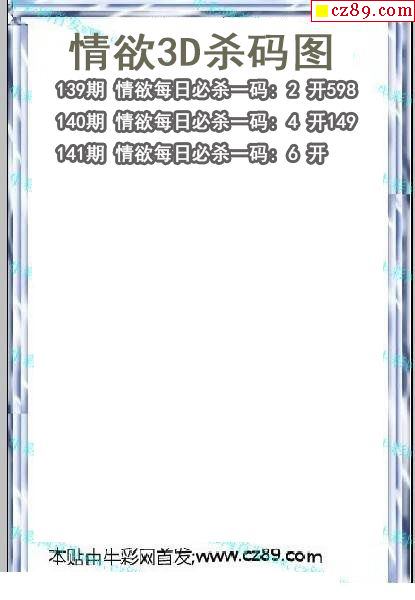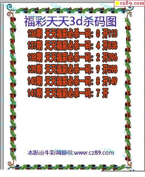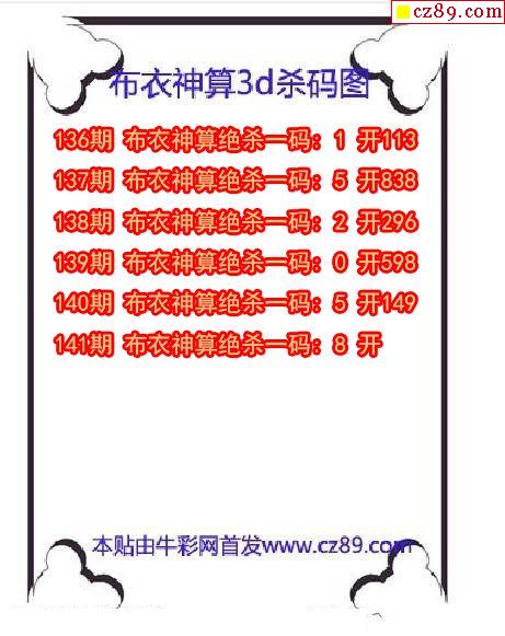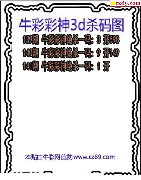牛彩版3D预测彩报图25年189期打印版