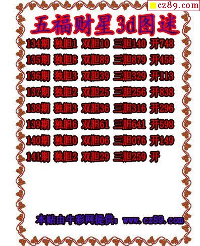 牛彩版3D字谜彩报图25年189期打印版