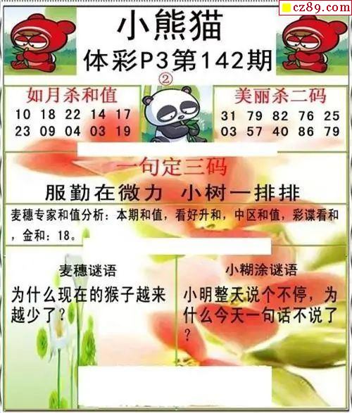 小熊猫2025189期体彩P3图谜