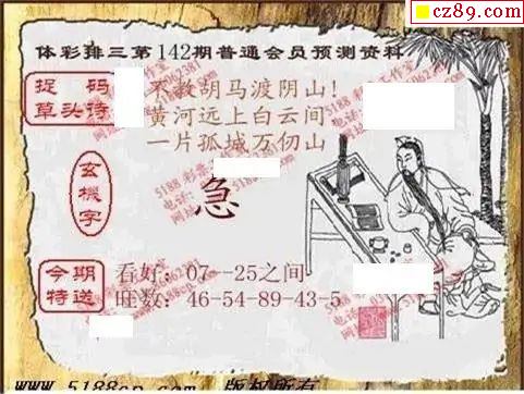 2025年142期牛彩网体彩P3画迷图谜汇总分享