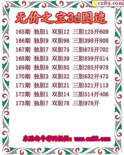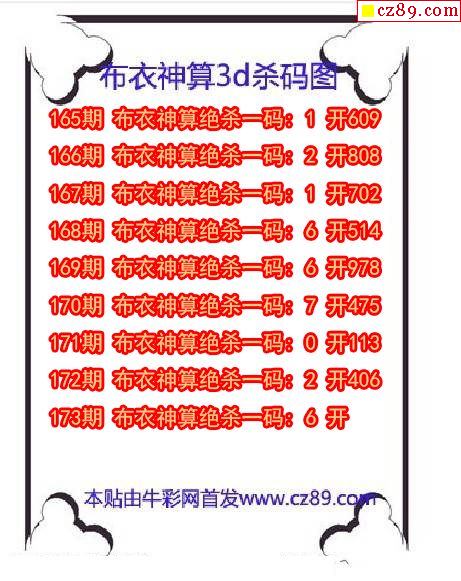 牛彩版3D预测彩报图25年189期打印版