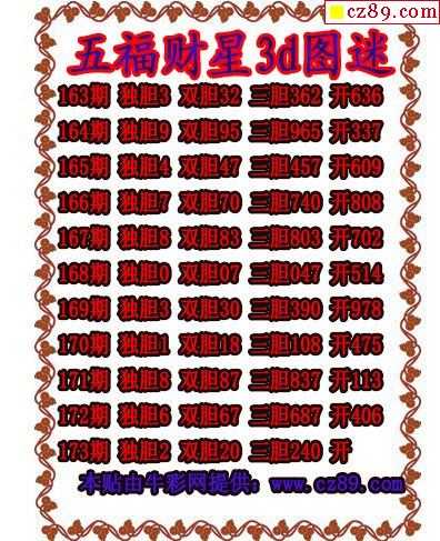 2025189期3D图谜汇总(一)